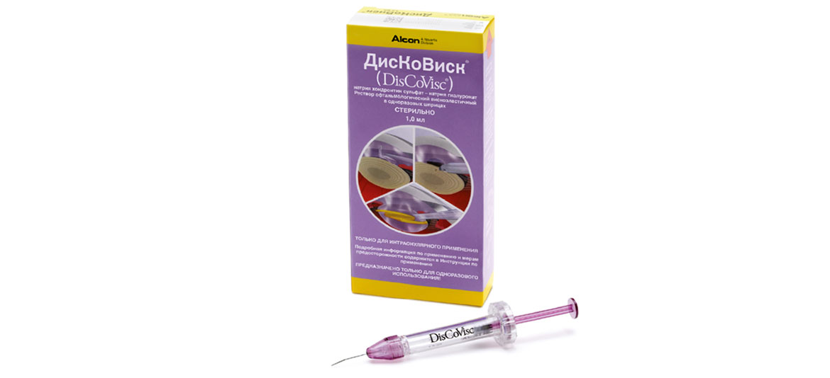 ДисКоВиск – уникальный высокоэффективный препарат, обеспечивающий надежность и комфорт при проведении всех офтальмологических операций. Произведен американской компанией Alcon. В истории офтальмохирургии является первым и единственным виско-дисперсным средством.